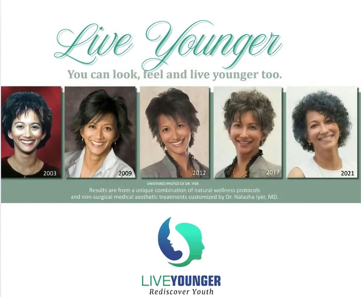 At Live Younger, we focus on NATURAL. Our goal is to help you look like you—just fresher, brighter, and more vibrant. With over 20 years of experience, we offer the safest, most effective treatments to help you slow down aging—or turn back the clock a little.