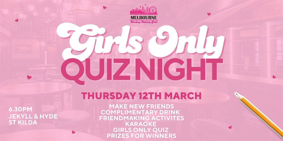 Join us for a night of fun, friendly competition, and making new friends at our Girls-Only Quiz Night at Jekyll & Hyde, St Kilda!