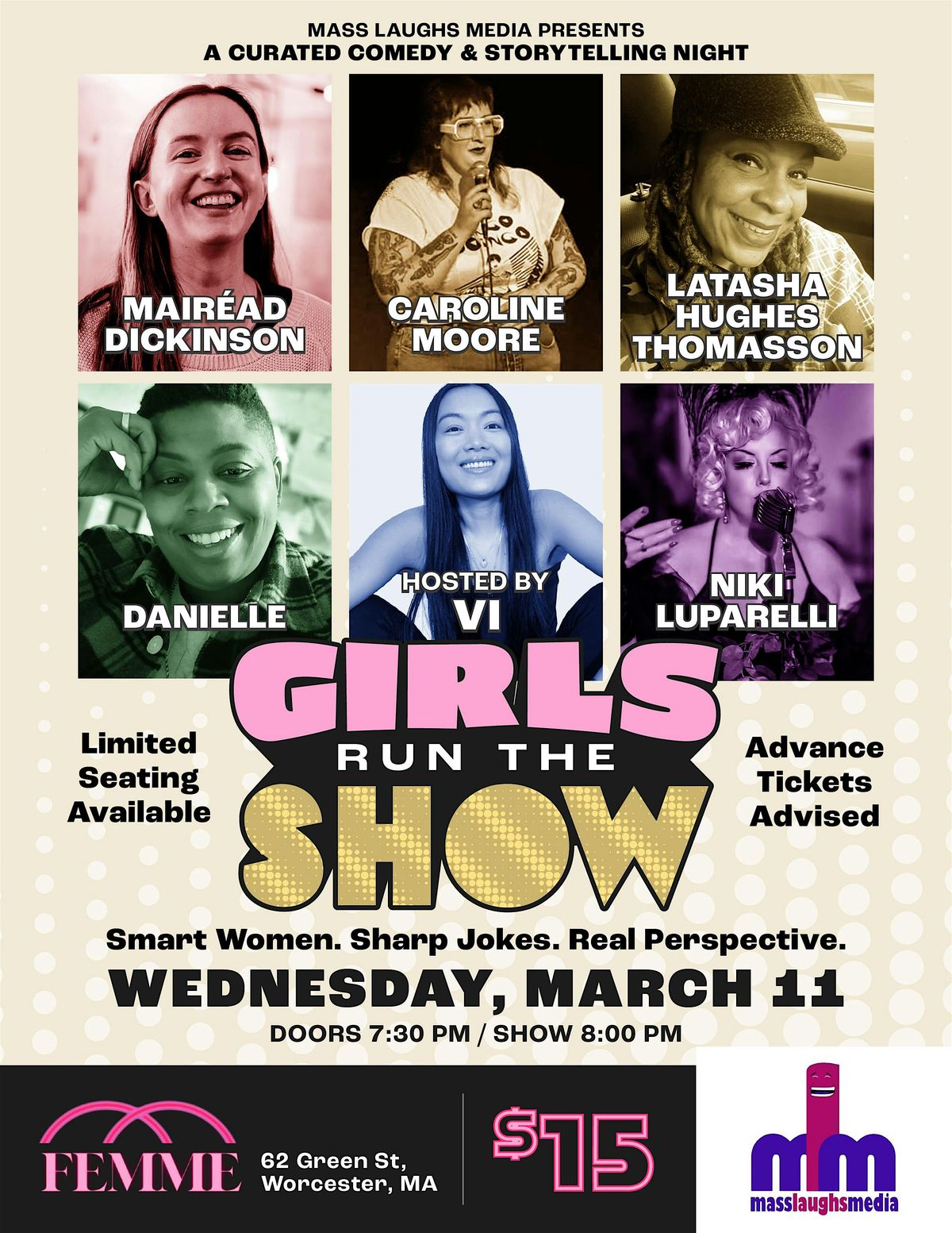 Girls Run the Show puts women front and center with sharp, hilarious perspectives that will make you laugh, think, and maybe even snort your drink.