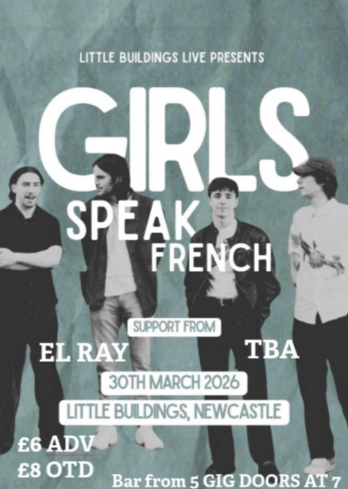 GIRLS.SPEAK.FRENCH, the fresh alternative 4-piece band from Glasgow, kicked off a fuss with the. release of their debut single “Britpop Genius”. Having been featured on BBC Introducing and Amazing. Radio, the quartet continue to develop the energetic, melodic chaos that is GSF since.El Ray Toon