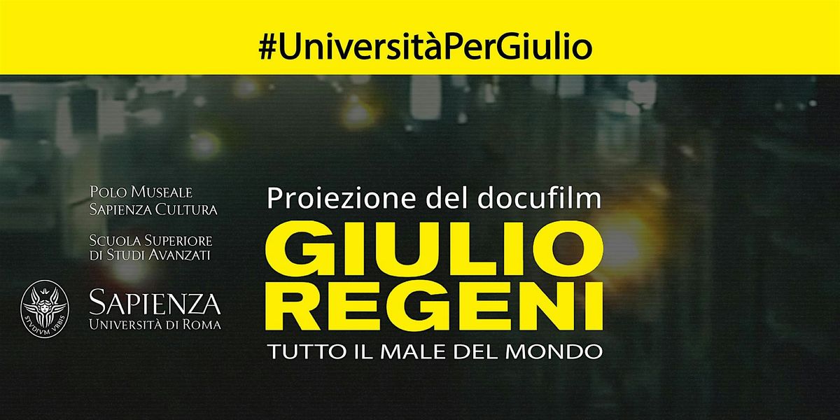 Nell’ambito dell’iniziativa “Le Università per la libertà di ricerca, a 10 anni dalla scomparsa di Giulio Regeni” Sapienza promuove un evento pubblico che, dopo i saluti della Rettrice Antonella Polimeni e il videomessaggio dei genitori di Giulio, vedrà la proiezione del documentario “Giulio Regeni - Tutto il male del mondo”, seguita da una tavola rotonda moderata da Pietro Del Soldà giornalista e conduttore del programma di Rai Radio3 “Tutta la città ne parla”.