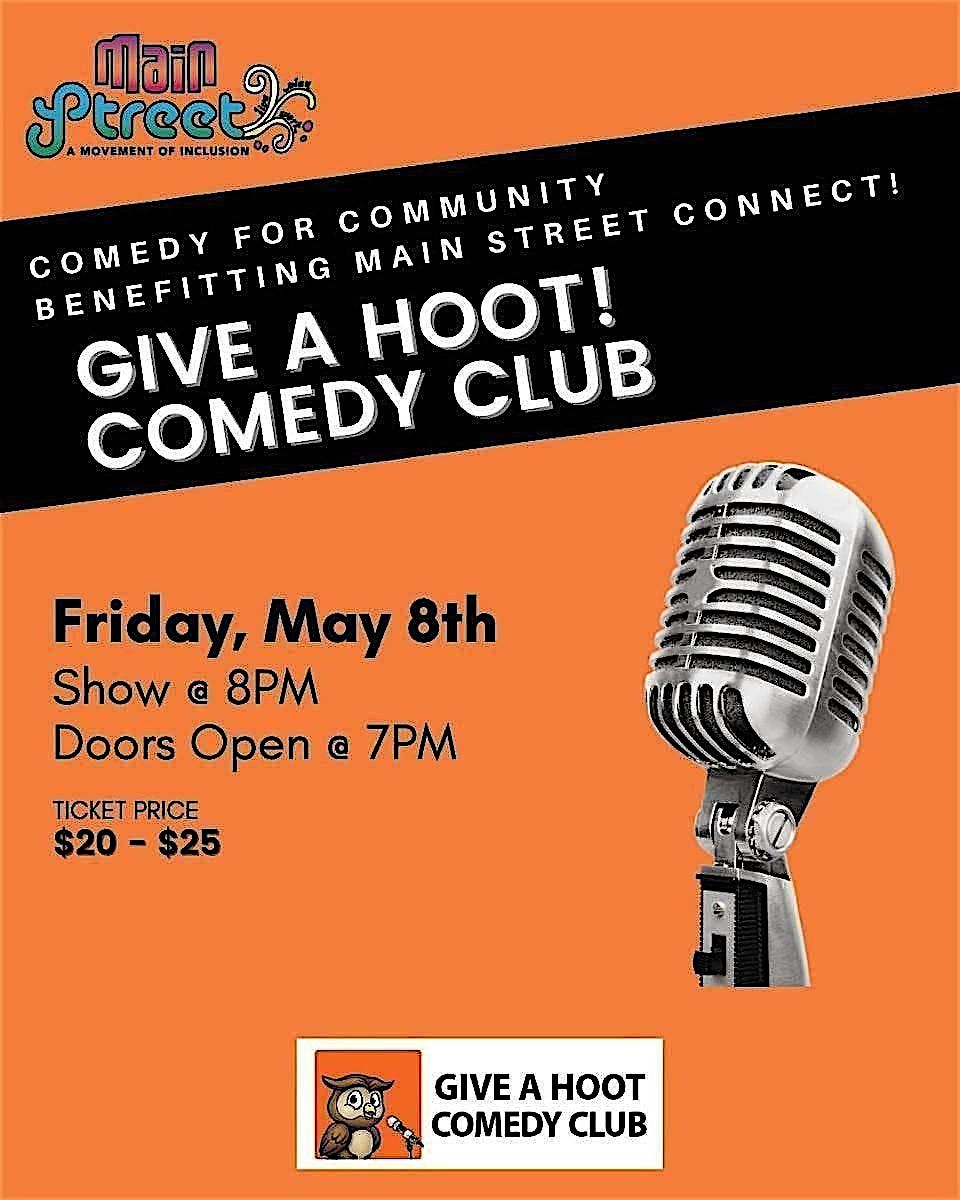 Join us on May 8th for a night of laughs at Give a Hoot Comedy Club!