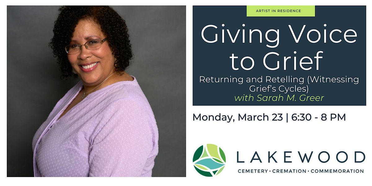 March 23rd marks the final community sing of Sarah M. Greer’s residency at Lakewood Cemetery. The theme is about witnessing the cycles of grief and what we feel and discover as grief recedes and returns.