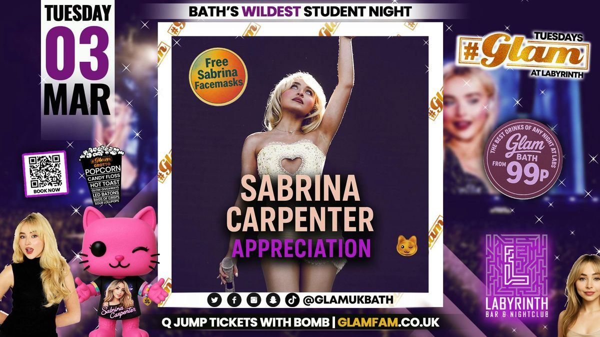 Glam - \ud83c\udfa4 SABRINA CARPENTER APPRECIATION \ud83c\udfa4 Bath's Wildest Student Night!! | Tickets and Drinks from 99p!\u203c\ufe0fEvery Tuesday at Labyrinth \ud83d\ude3b
