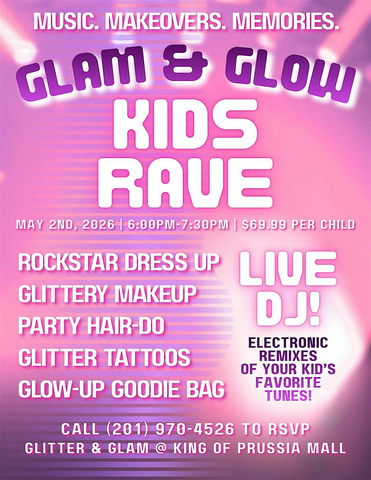 Glitter & Glam presents the first ever Rave-Themed Makeover Party! Includes dress up, makeup, hair, gift bag, photo area, live DJ, & more.About this Event