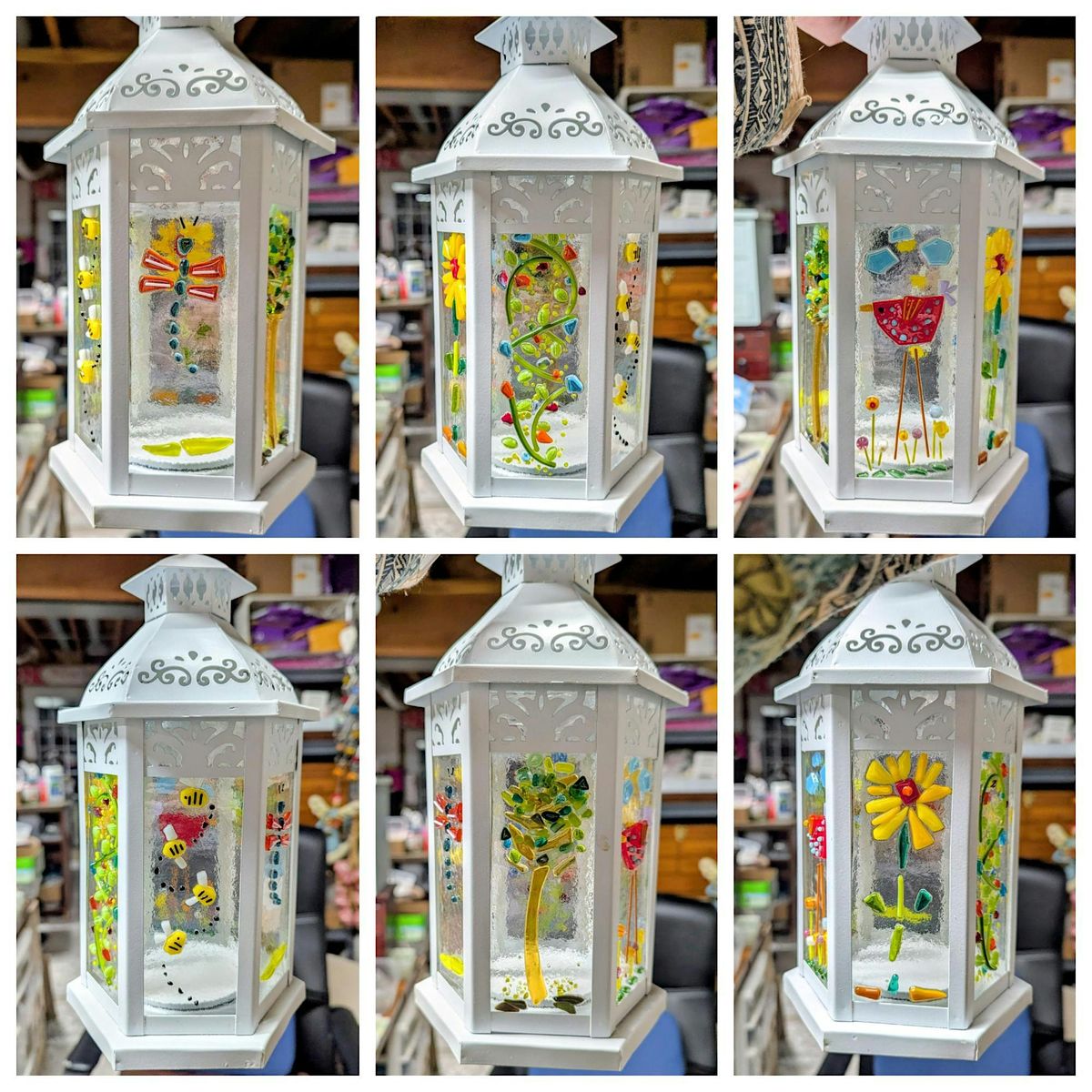 Join us for this dainty & beautiful 6 panel fused glass lantern. $68
