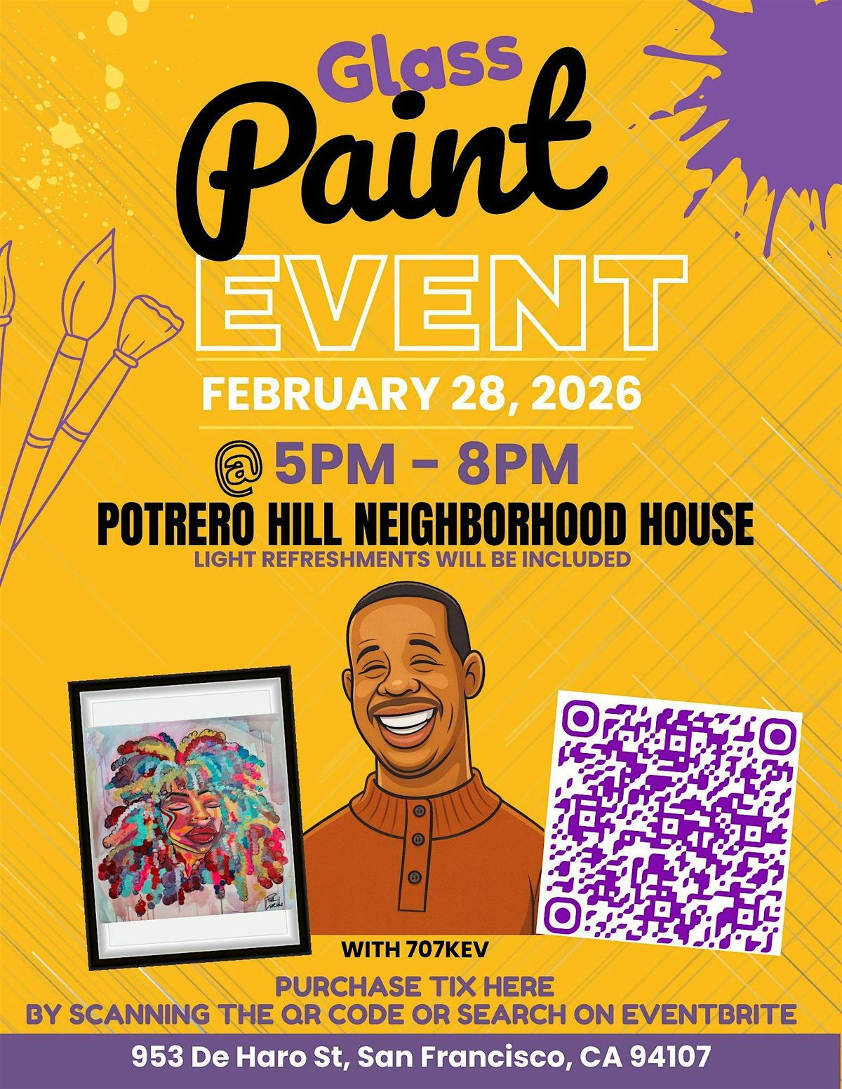 Paint glass with SF views at Potrero Hill Neighborhood House! Light refreshments, no experience needed. Build confidence Feb 28, 5–8pm.
