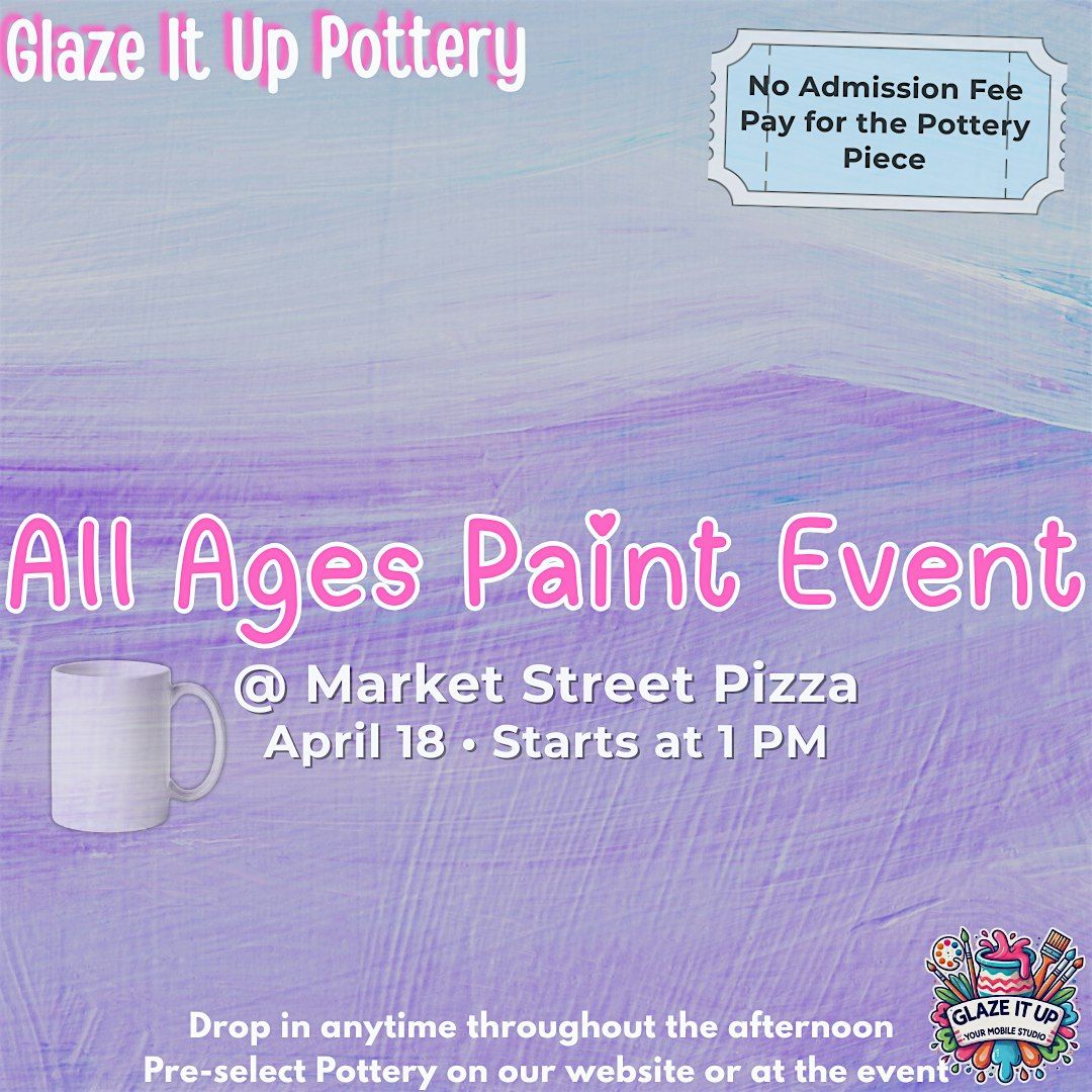 After so many requests, Glaze It Up Pottery is hosting an ALL AGES paint event at Market Street Pizza (2721 N Market St. Spokane, WA)!