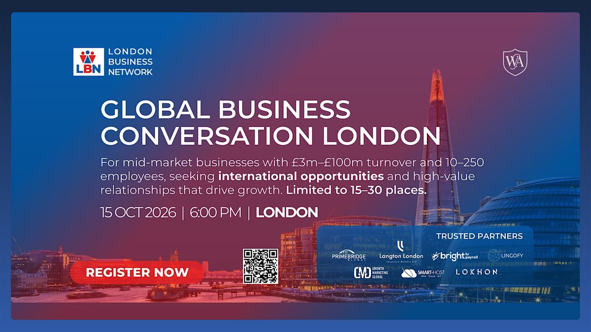 Global Business Conversation by London Business Network is a strategic business networking event convening senior decision-makers and connecting public and private sector leaders to identify UK, EU, and international commercial opportunities that drive economic growth.