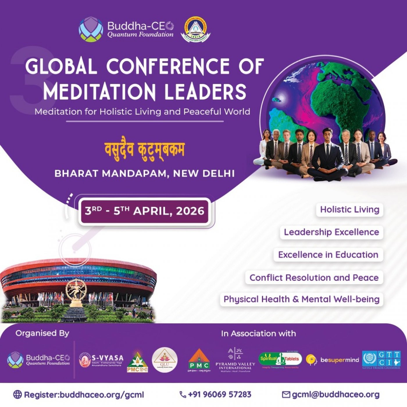 - The Conference supports decision-makers across government, healthcare, education, corporate, and business sectors in shaping and implementing strategies for scalable adoption of meditation. This will be achieved through research-backed insights, technology-enabled solutions, case studies, and support from trained meditation coaches, under the global initiative "Project Meditation".