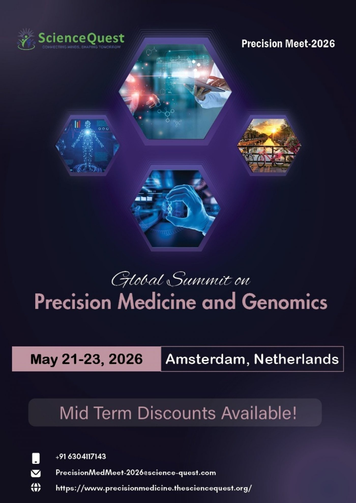 Global Summit on Precision Medicine and Genomics, taking place from May 21–23, 2026, in Amsterdam, Netherlands. This premier event will bring together leading professionals, researchers, and industry experts from around the world for an extraordinary gathering focused on the latest advancements in precision medicine and genomic science. Attendees will have the opportunity to explore cutting-edge innovations, breakthrough research, and emerging trends that are shaping the future of personalized healthcare. The summit will feature inspiring keynote speeches, plenary talks, groundbreaking research presentations, dynamic workshops, and engaging panel discussions. Additionally, it will provide unparalleled networking opportunities for professionals to collaborate, exchange ideas, and build partnerships that drive innovation in the field. Join us Amsterdam, as we work together to advance the global impact of precision medicine and genomics.