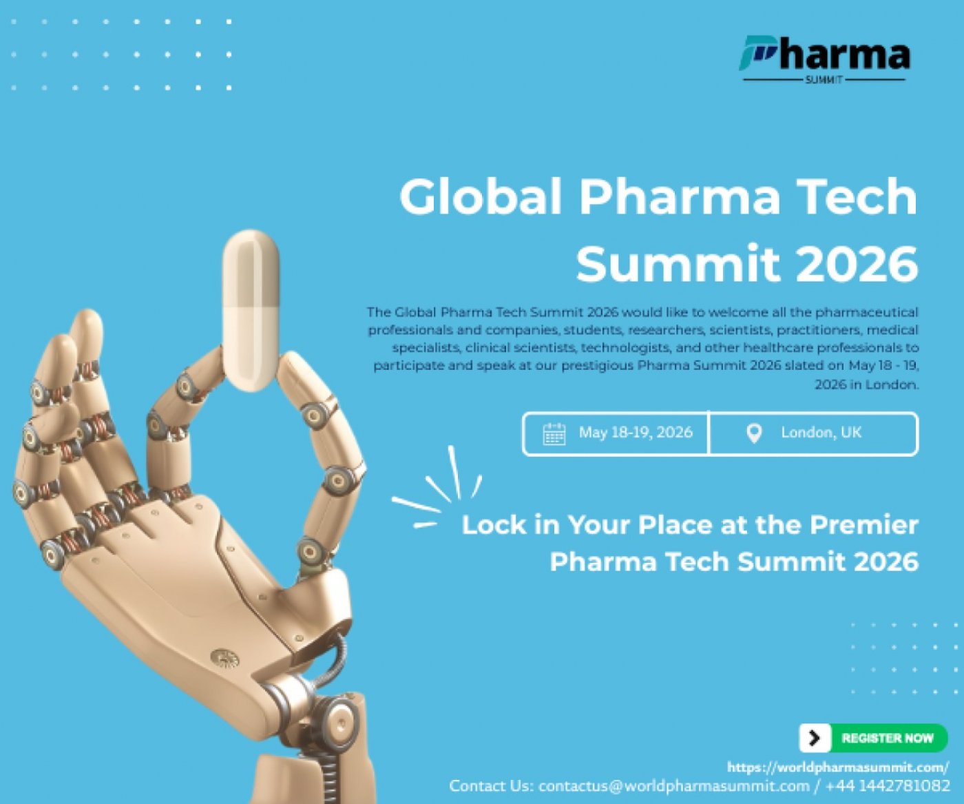 The Global Pharma Tech Summit 2026 is a boutique, senior-level conference taking place in London in May 2026, designed to bring together decision-makers from pharma, biotech, life sciences, AI, and digital health.