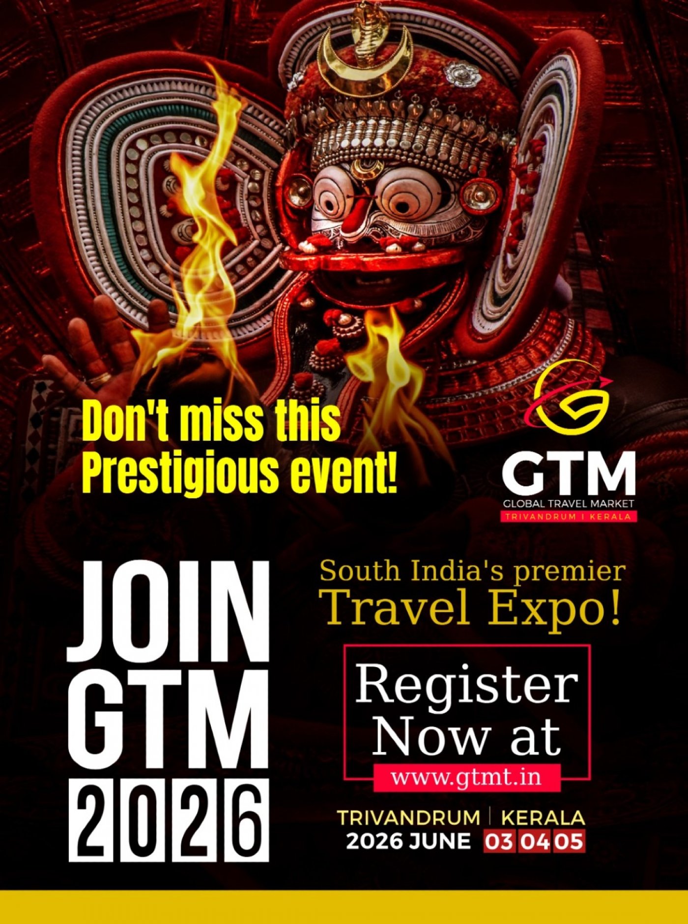 Global Travel Market (GTM 2026) South India’s prestigious Travel Expo is an annual B2B travel and trade exhibition that brings together key industry leaders in India and abroad. The event brings together exhibitors and buyers and provides an opportunity to develop new business partnerships and boost their endeavors. The Second edition of the Global Travel Market will be held at Trivandrum from 3th to 5th March 2026.