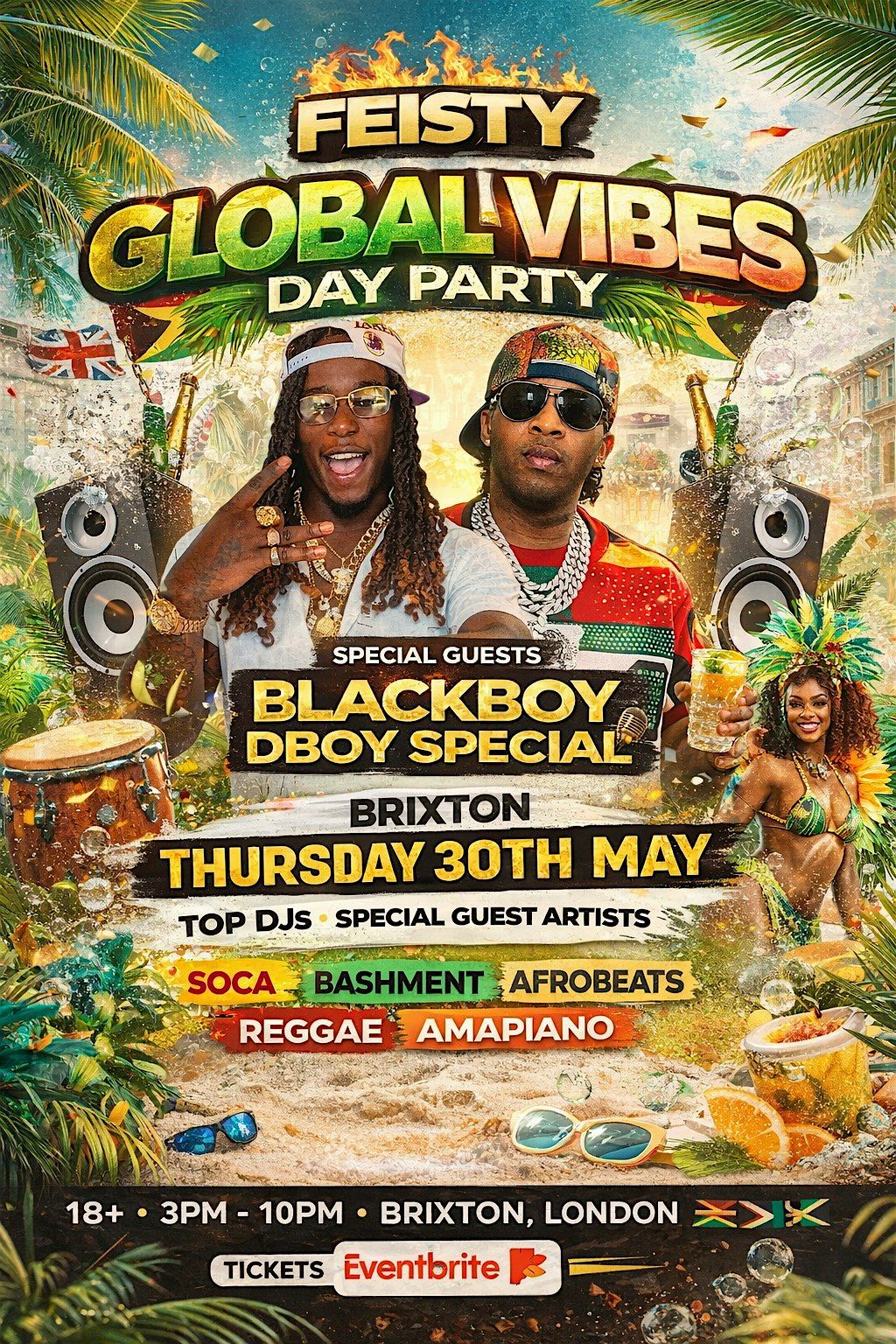 A high-energy Brixton day party bringing together the best in Bashment, Amapiano, Reggae, Soca & Afro