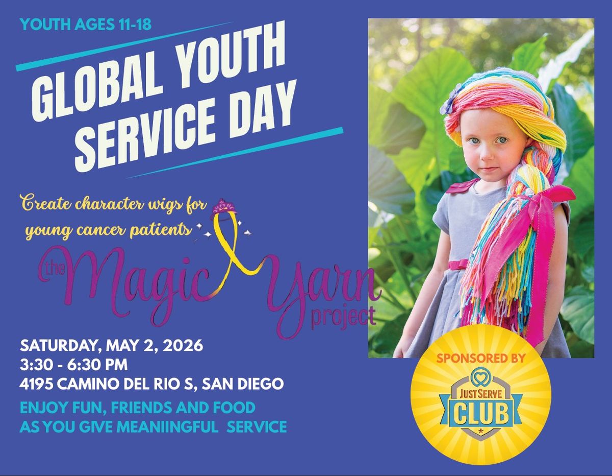 Please participate in our Global Youth Service Day event for youth in the San Diego area. All youth ages 11-18 will be working together to make character wigs with the Magic Yarn Project for young cancer patients right here in San Diego. Food, fun and friendship will all be part of this memorable service event. Please wear a blue shirt of any shade for our iconic picture tradition. This event is sponsored by JustServe Student Clubs, but you don't need to be a club member to participate.