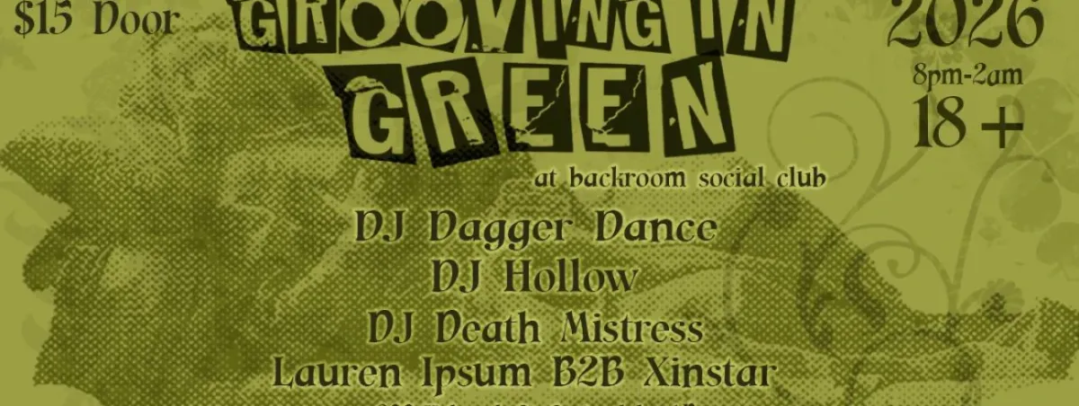 It's Grooving in Green at Gloom Room! We're bringing some super talent up from Little Rock to tickle your earholes.Featuring:DJ Dagger DanceDJ HollowDJ Death MistressLauren Ipsum B2B Xinstar