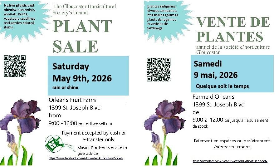 Native plants and shrubs plus annuals, perennials, herbs, veggies and gardening supplies. Payment accepted by Cash or e-transfer