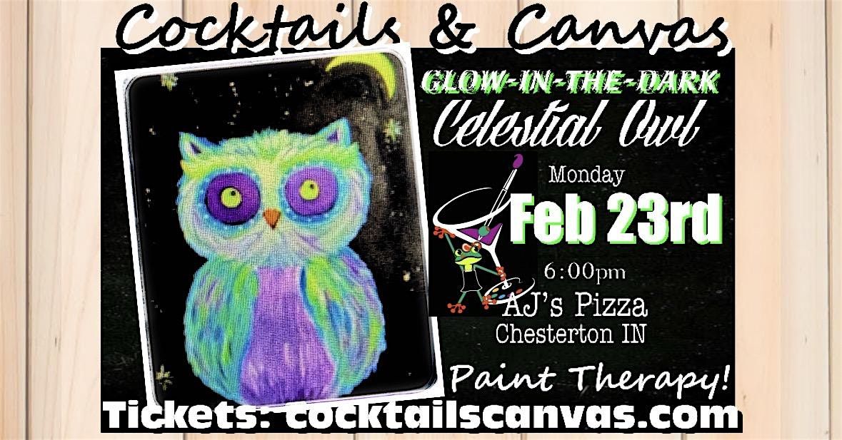 Glow-in-the-Dark Celestial Owl Cocktails and Canvas Fun Paint & Sip Event