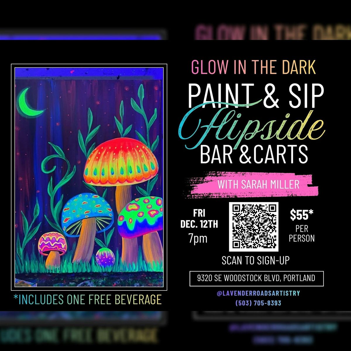 Get ready for a fun night where creativity meets neon vibes! Join us in person for a wild painting session that glows under blacklights. Sip your favorite drinks, chat with friends, and watch your artwork come to life in the dark. Whether you’re a pro or a first-timer, this event is all about having a blast and making cool memories. Don’t miss out on the brightest party in town!