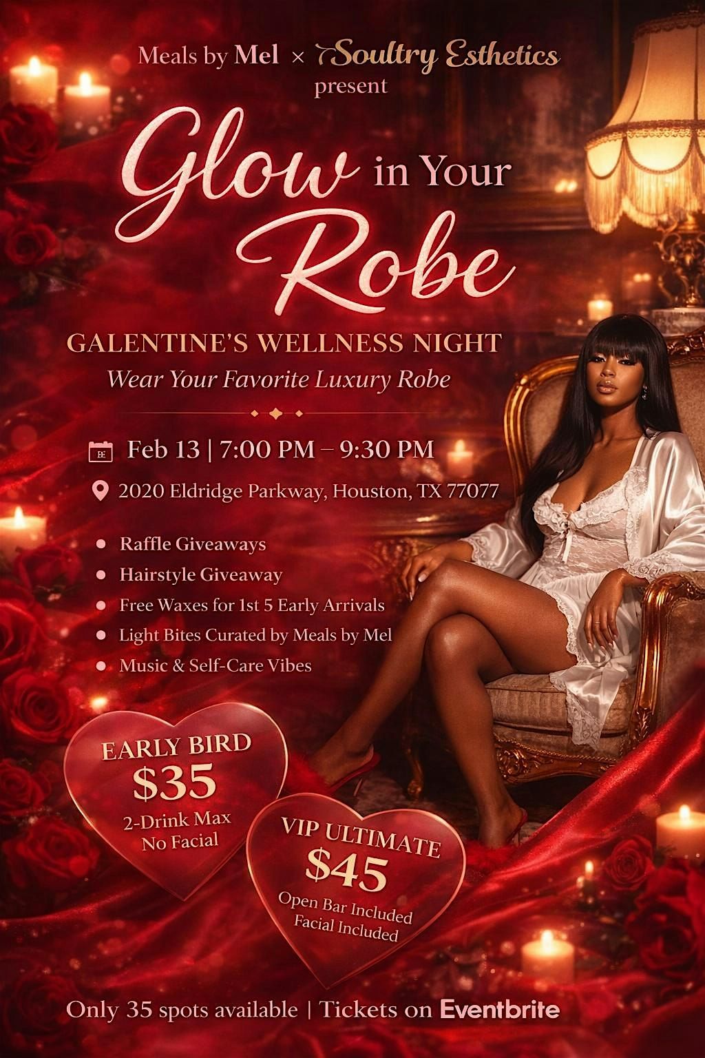 Glow in Your Robe is a cozy yet glamorous wellness experience hosted by Meals by Mel × Soultry Esthetics, curated to help you unwind, glow, and indulge in the vibes.