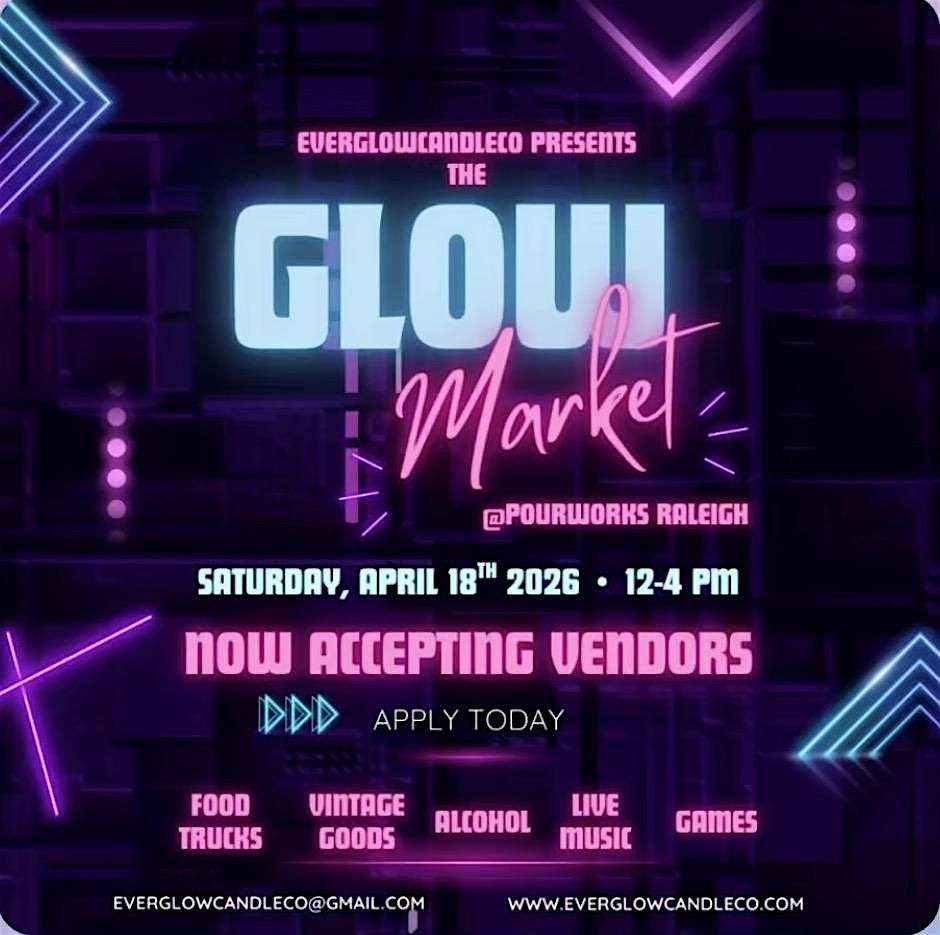 Get ready to shop, sip, and glow! EverGlow Candle Company is bringing the Glow Market to Pourworks in Raleigh for an afternoon of community, creativity, and fun.Saturday, April 18th