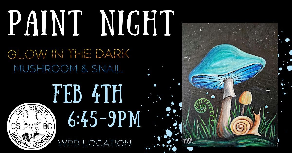 Come join us for a fun and creative evening at Civil Society Brewing Co.! Let your artistic side shine as we paint glow-in-the-dark mushrooms and snails. No experience necessary, just bring your enthusiasm and we'll provide all the materials you need. Get ready for a night filled with laughter, creativity, and maybe a little bit of glow! See you there!