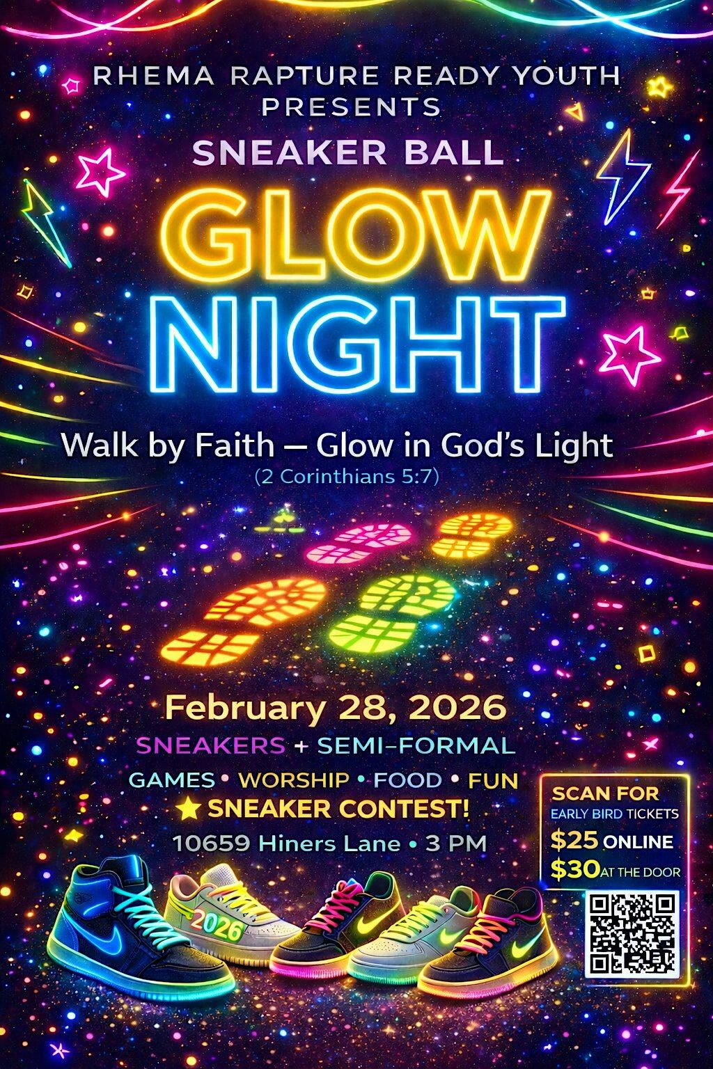 Get ready to dance the night away in your favorite sneakers under the glow of neon lights at the Glow Night Sneaker Ball!