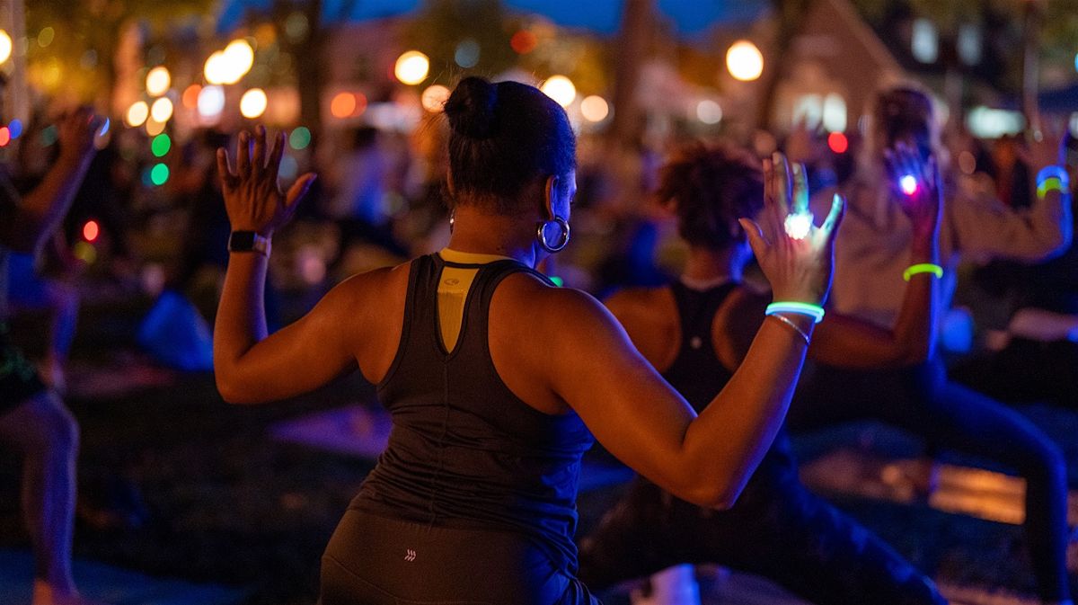 A glow-in-the-dark themed outdoor yoga flow with a live DJ and local vendors!