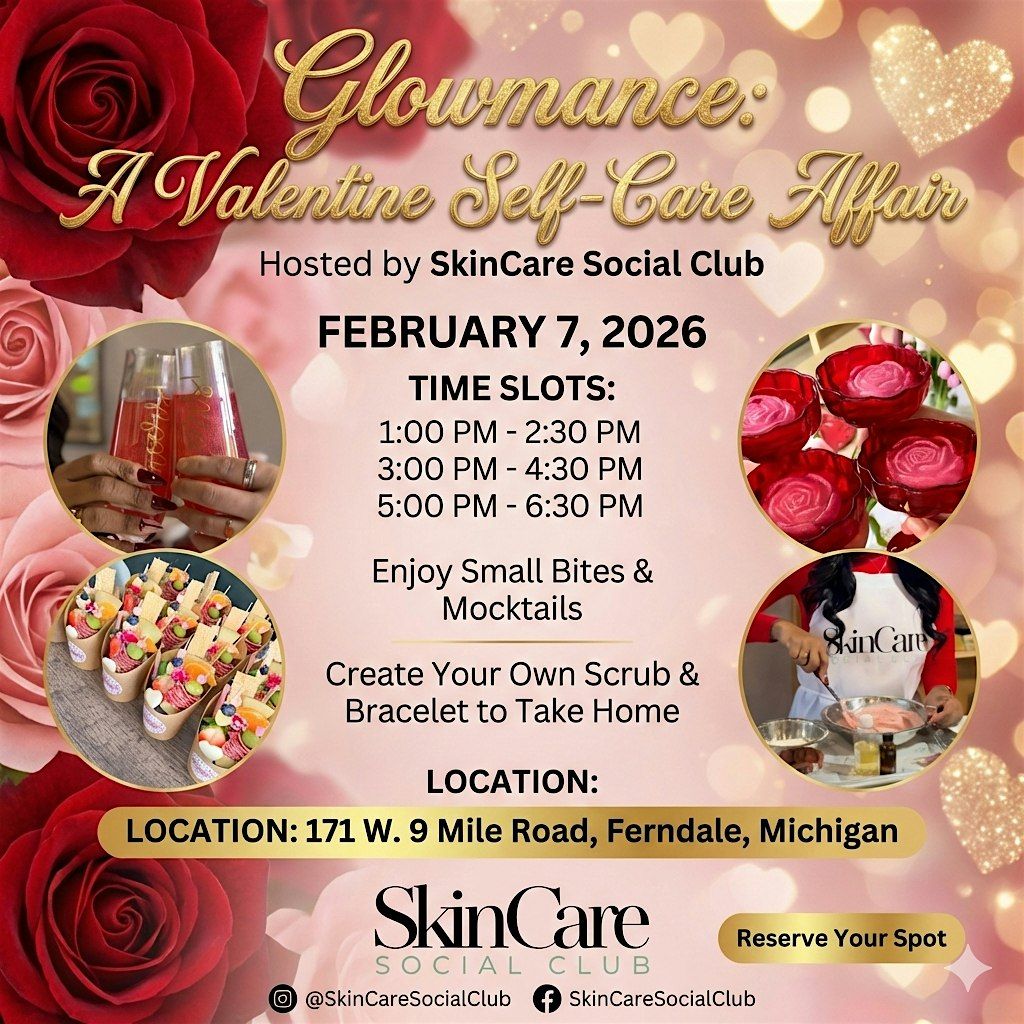 Join us at Skin Care Social Club for our first-ever Galentine's Day event: The Glowmance. We are turning our Ferndale studio into the ultimate self-care destination for you and your friends to celebrate friendship, fun, and fabulous skin.