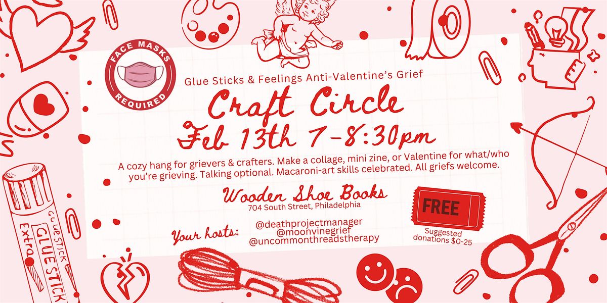 Join us for Glue Sticks and Feelings: an Anti Valentine’s Day Grief Crafting Circle.