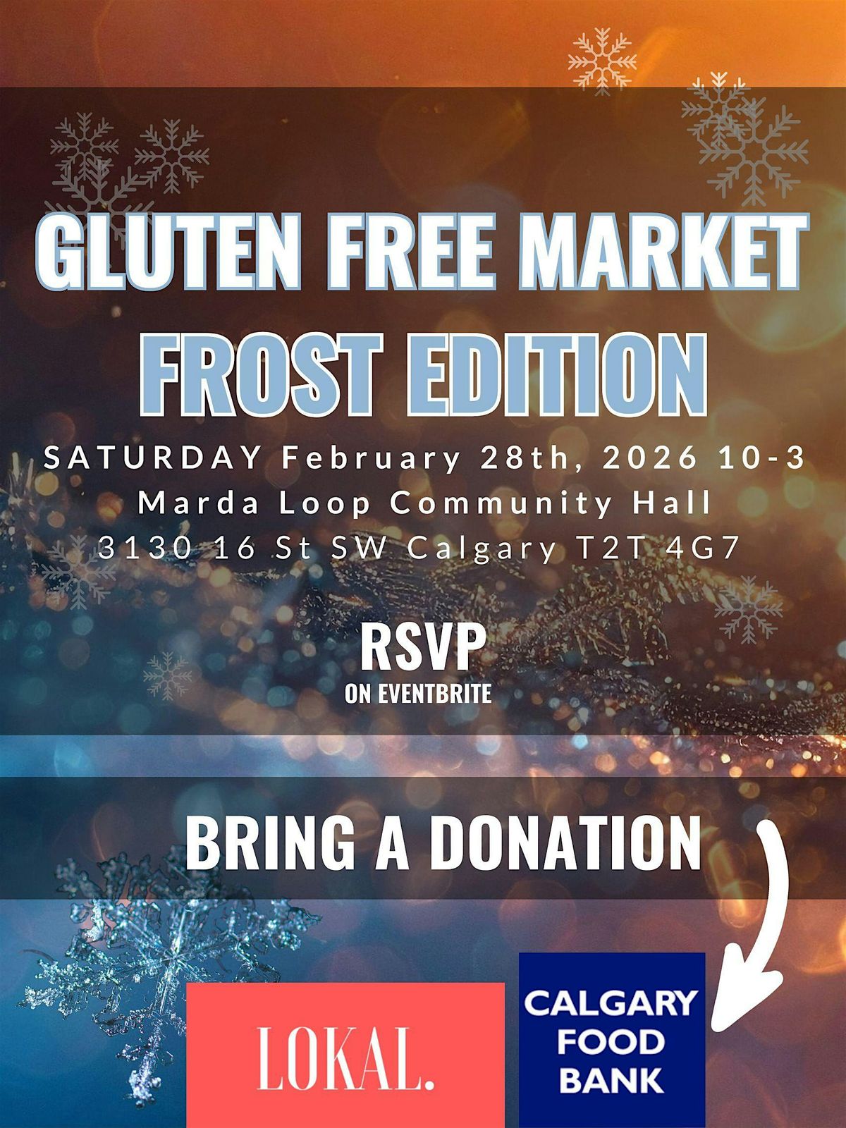 Join us for the ultimate Gluten-Free Frost Market on February 28th from 10 AM to 3 PM at the Marda Loop Community Association Hall. Indulge in a fantastic array of gluten-free products and treats, all in one place, designed to cater to both celiac sufferers and those with gluten intolerance.This event promises a gluten-free experience that's inclusive of both lifestyles and needs. Don't miss out on this opportunity to explore some local delicious gluten-free options. Stock Up with baked goods and more to stay warm. Let your friends and family know that they can get all their goodies here.Every table will be labelled as Celiac, non-celiac, or both depending on the business model.