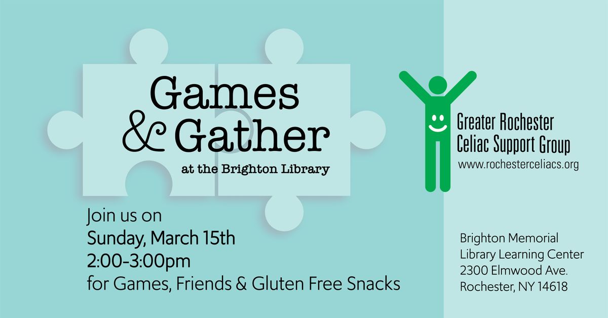 The Greater Rochester Celiac Support Group invites you to an afternoon of fun, connection, and gluten-free snacks at the Brighton Memorial Library!