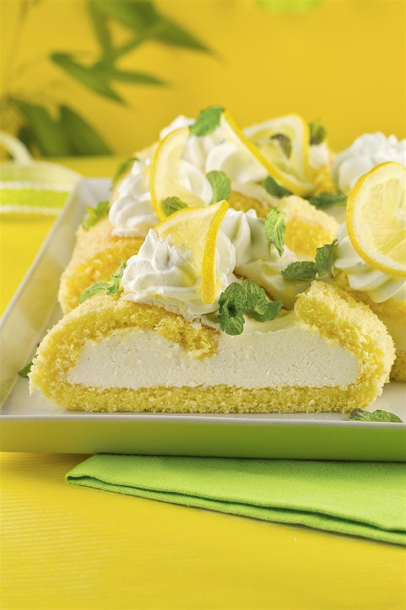 - Lemon-Curd Roulade- Sponge cake rolled around lemon curd and whipped cream.