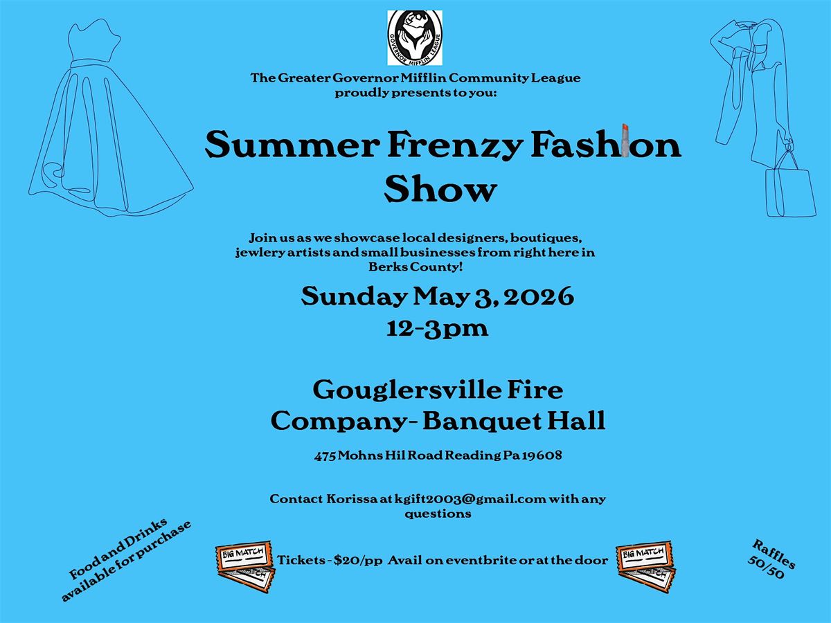On May 3, 2026, they kindly invite you to their "Summer Frenzy Fashion Show" with a wonderful co-host, Gouglersville Fire Company & Social Quarters who are one of their awesome sponsors as well!