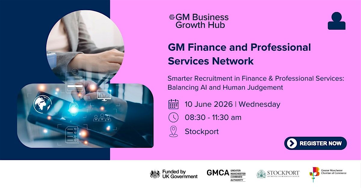 The GM Finance and Professional Services Network returns with the second event in our series — this time exploring how organisations across Greater Manchester’s FPS sector can build smarter, fairer, and more resilient recruitment practices by combining the best of technology with the irreplaceable value of human insight.