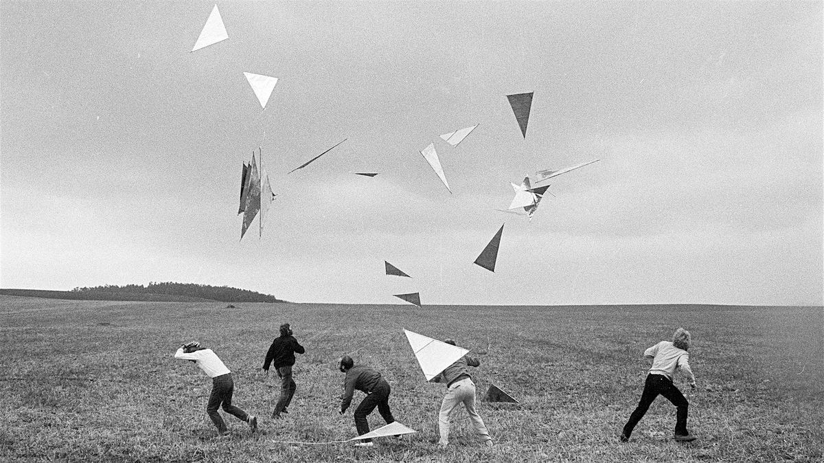 Image: Drachen-Aktion beim Pleinair in Kolkwitz-Rudolstadt © 1986 Lindenau-Museum Altenburg / Archiv Ralf-Rainer Wasse