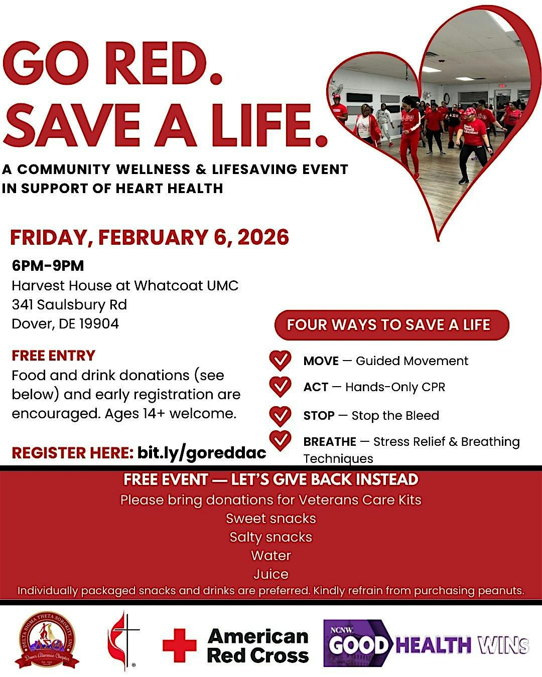 Join us for Go Red. Save a Life., a free community wellness and lifesaving event dedicated to heart health, empowerment, and preparedness. This interactive evening will focus on simple, practical ways everyday people can save lives—whether at home, at work, or in their communities. Participants will experience hands-on demonstrations, guided activities, and educational sessions designed to increase confidence and awareness if you’re required to act in the nick of time.