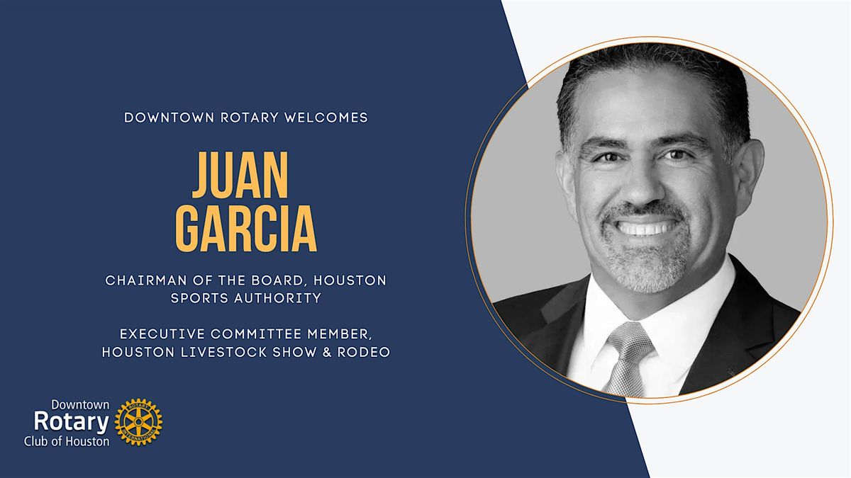 Celebrate Go Texan season with Downtown Rotary as we welcome Juan Garcia, a proud native Texan, accomplished trial lawyer, and trailblazing leader with the Houston Livestock Show and Rodeo.