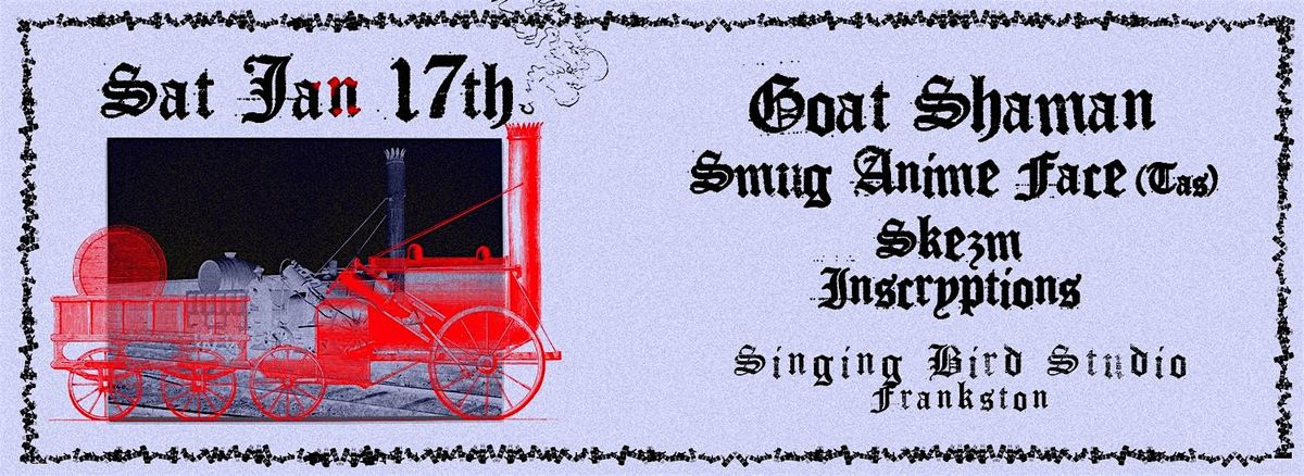 Titans of Sludge Goat Shaman return to their spiritual home to Headline an absolute ball tearing lineup with Smug Anime Face (Tas) Skezm + newcomers Inscryptions. Get ya tix for this one Franga loves the GOATS and will no doubt sell out