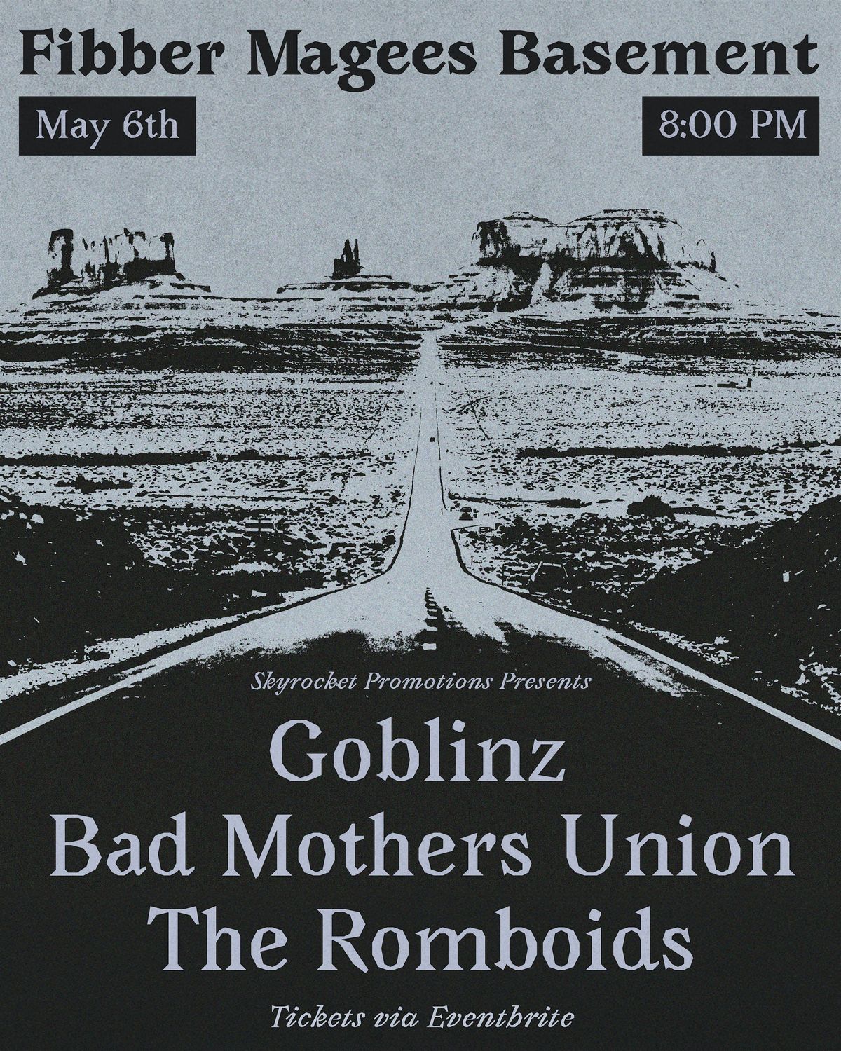 Come join us for an amazing night of live music at Fibber Magees Basement with Goblinz, Bad Mothers Union and The Romboids on May 6th.