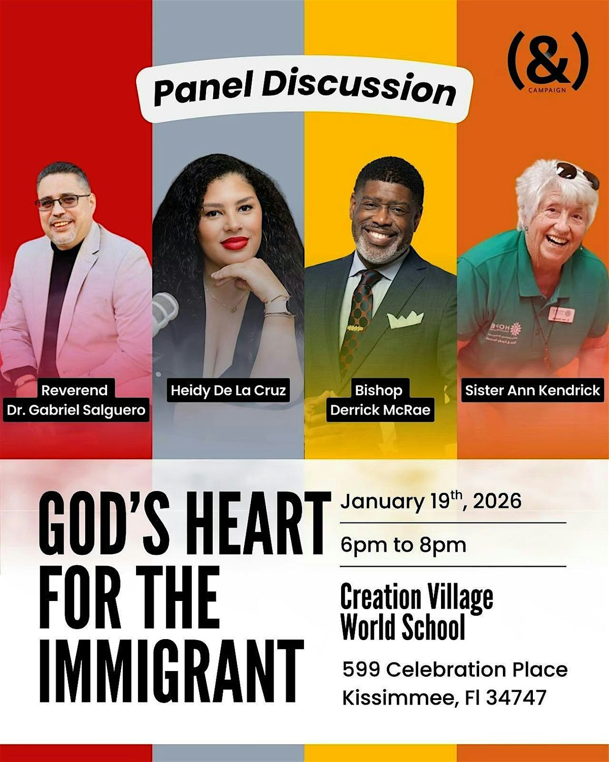 This panel discussion is a local expression of the AND Campaign’s Civic Revival 2.0 campaign, in which regional chapters are encouraged to address one key area of civic interest and discourse. The members of ORL&DO chose to create a space for the Church to reconsider how we have shown up in public discourse on this issue.