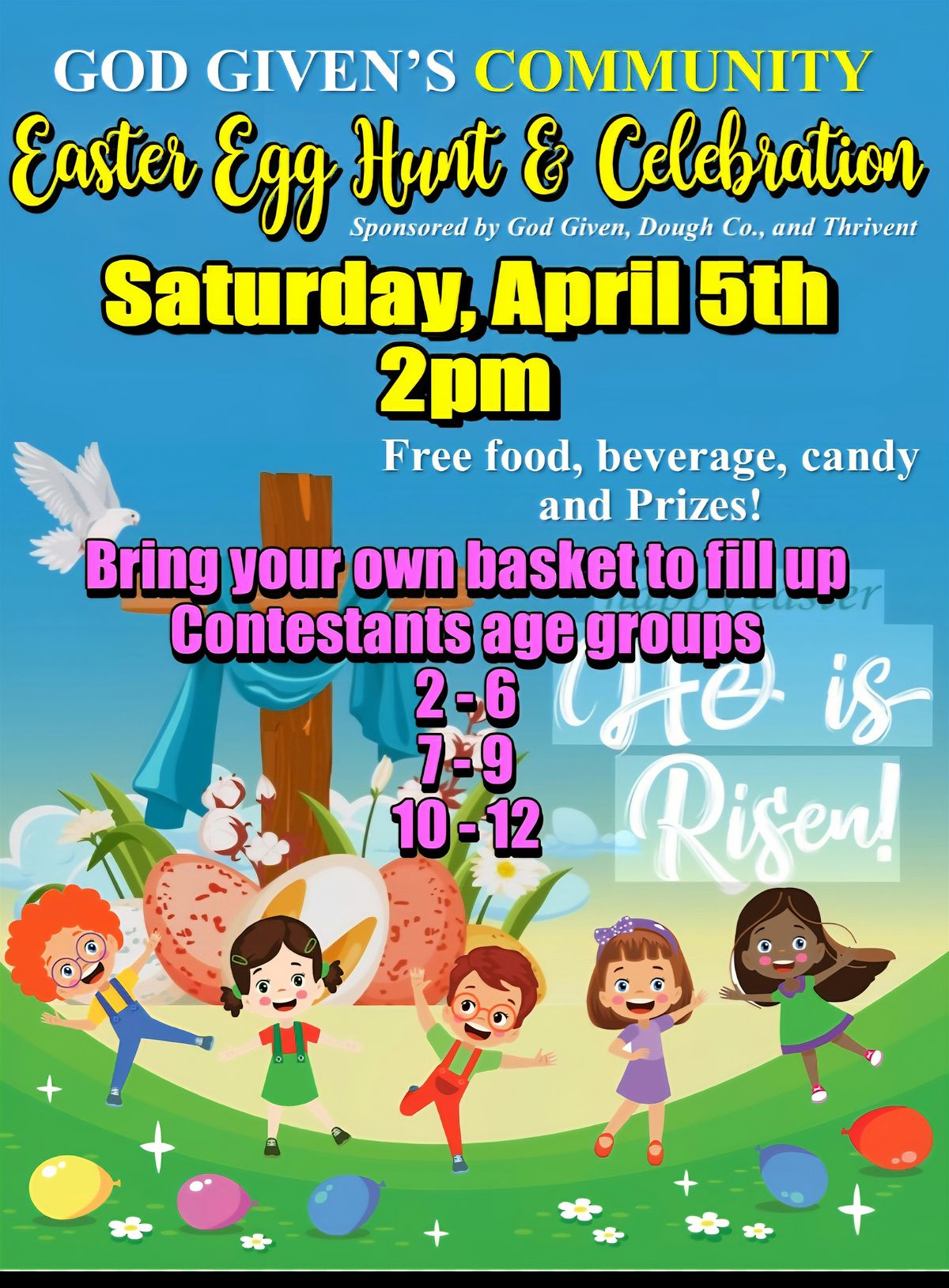 Easter egg hunt for 3 age groups BRING YOUR BASKETS. Food, Fun, and some can win baskets. Address 1027 9th St. NE Canton, 44705
