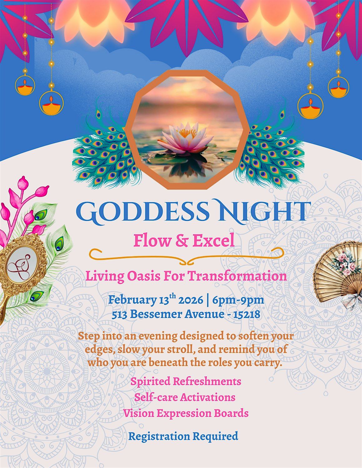 Join us for an unforgettable in-person experience where vibes are high and connections run deep. It's all about celebrating your inner Goddess in a chill, fun atmosphere. Whether you're looking to unwind, meet amazing people, or tap into your creative expression, Goddess Night has got you covered. Don’t miss out on this epic evening full of good energy and great company!