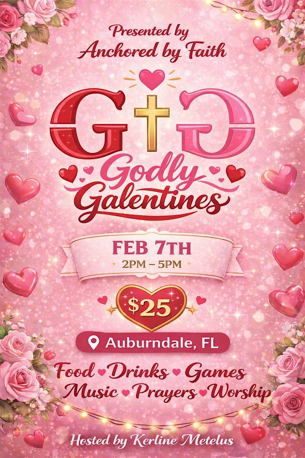 godly valentines is a faith filled gathering designed to bring women together in love , unity , fellowship and purpose , join us for an uplifting afternoon of prayer , worship , testimonies , games ,food and drinks as we celebrate sisterhood rooted in Christ .