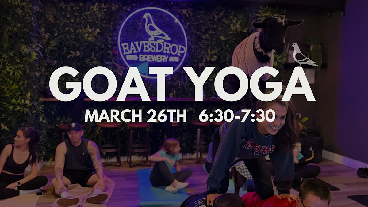 Goat Yoga is coming to Eavesdrop on Thursday, March 26th. Join us for an hour of movement, relaxation, and plenty of goat cuddles. Whether youâre a seasoned yogi or just here for the goats, this session is all about unwinding, laughing, and having fun.