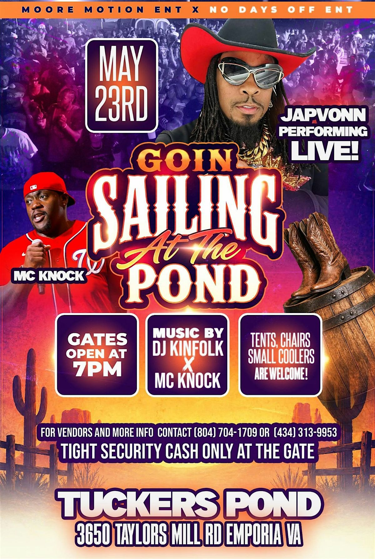 MAY 23RD — GOIN SAILING AT THE POND ⛵️ SAME CREW. SAME LOCATION. BIGGER VIBES JAPVONN LIVE DJ KINFOLK ALL NIGHT GATES OPEN @ 7PM