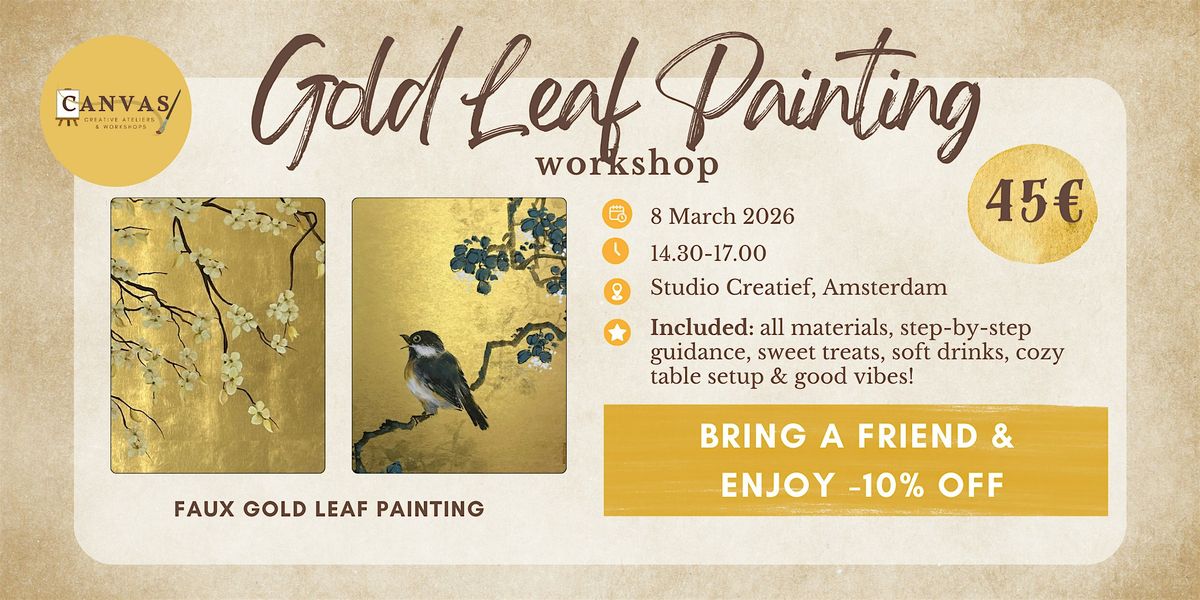 Join us for a calm and elegant painting workshop where you’ll learn how to work with faux gold leaf and acrylic paint. This session is designed for adults who enjoy refined materials, a relaxed pace, and a thoughtfully styled creative environment.