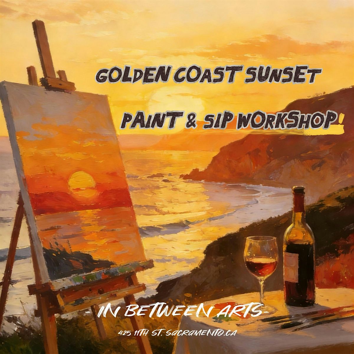Escape into the warm, golden glow of California’s iconic coast with our Golden Coast Sunset Paint and Sip Workshop. This intimate, guided painting experience invites you to capture the breathtaking magic of a Pacific sunset—where fiery orange skies melt into honeyed waves, and rugged cliffs frame the endless horizon.