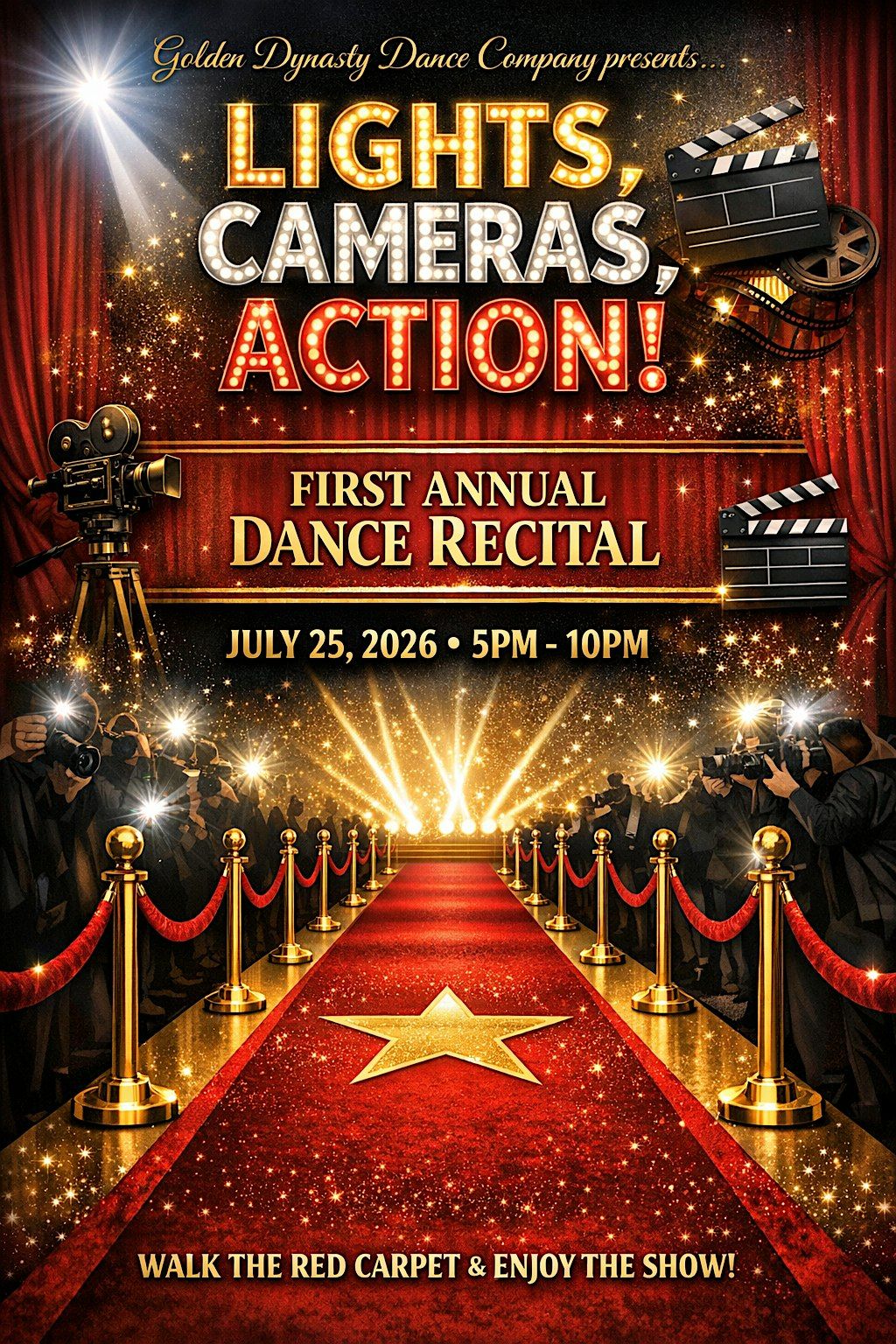 Get ready for an unforgettable night with the Golden Dynasty Dance Team 2026 Recital! Join us in person to experience amazing performances, vibrant energy, and a celebration of talent. Bring your friends and family to cheer on our dancers as they showcase their hard work and passion. Don't miss out on this fun and lively event that promises great vibes and stunning moves!