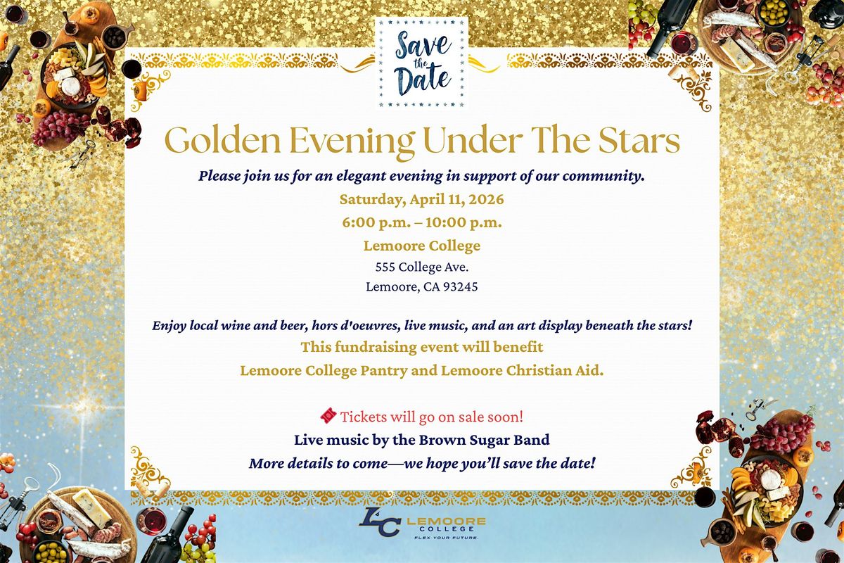Enjoy local wine and beer, hors d'oeuvres, live music, and an art display beneath the stars at Lemoore College.About this Event